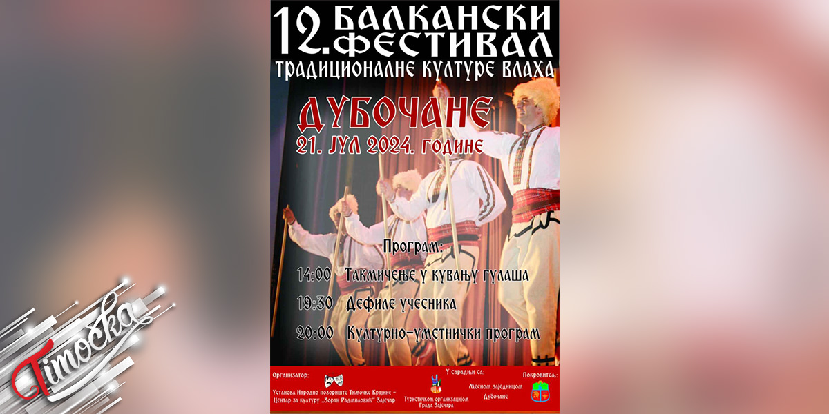 12. Balkanski festival tradicionalne kulture Vlaha biće održan u Dubočanu, kod Zaječara, u nedelju 21. jula 2024.