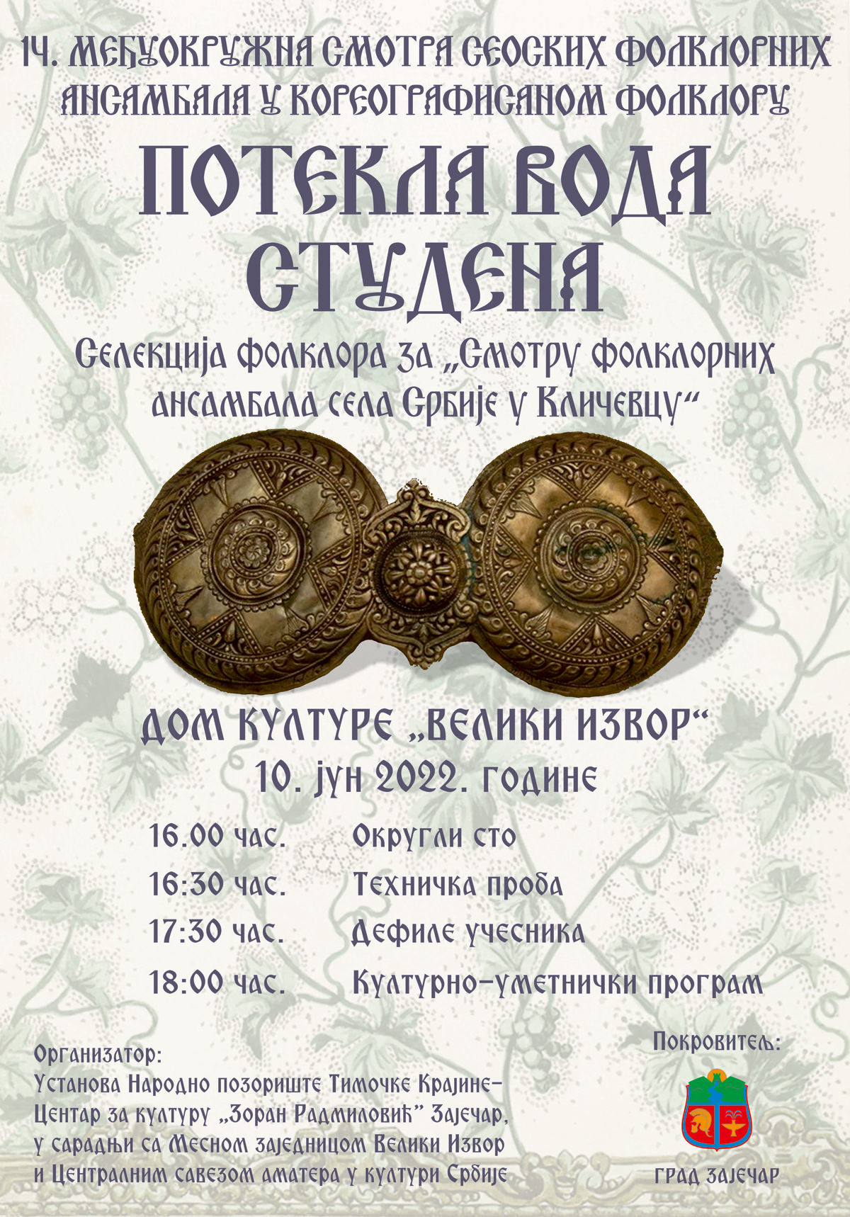 Тимочка КрајинаЗајечар14. Међуокружна смотра сеоских фолклорних ансамбала у кореографисаном фолклору „Потекла вода студена”...