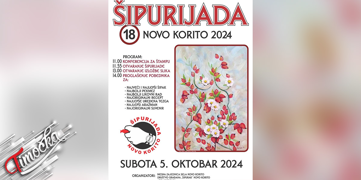 U Novom Koritu kod Knjaževca biće održana 18. „Šipurijada”, međunarodna manifestacija posvećena šipku i proizvodima od šipka, u subotu, 5. oktobra 2024.