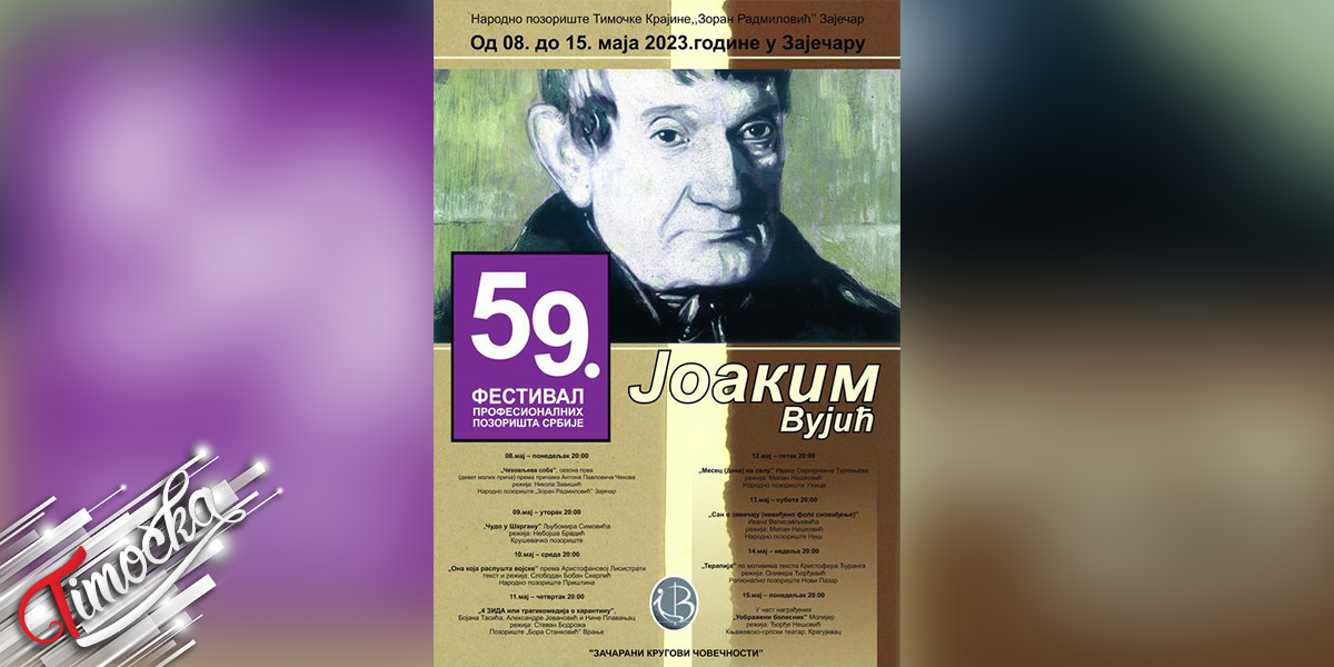 59. Festival profesionalnih pozorišta Srbije „Joakim Vujić“ biće održan u Zaječaru od 8. do 15. maja 2023. godine.