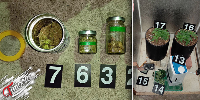 Policija je pretresom stana osumnjičenog pronašla opremu za uzgoj marihuane, sasušenu marihuanu i sveže biljke kanabisa ukupne težine oko 180 grama i elektronsku vagicu za precizno merenje.