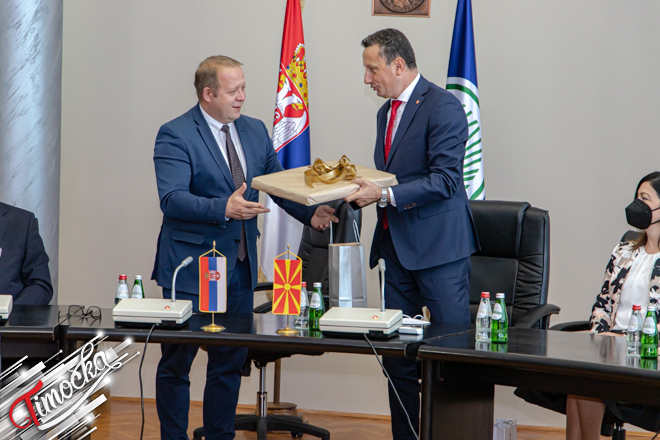 „Prenosim čestitke od bratskog naroda iz Krive Palanke. Saradnja je upostavljena pre nekoliko godina na zdravim osnovama i to između kulturno umetničkih društava dva grada. To je temelj za dalju saradnju i u ostalim oblastima, posebno u vreme korona virusa”, poručio je gradonačelnik Krive Palanke Borjančo Micevski.