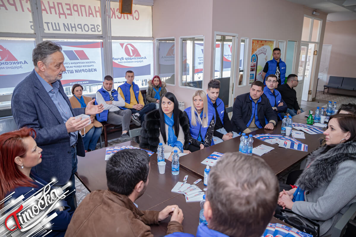 У штабу СНС-а у Зајечару, Момировић је разговарао са функционерима ове странке на локалу, али и са младим активистима.