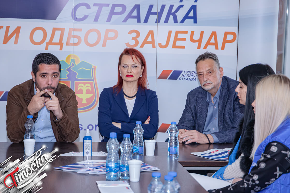 Састанку у штабу Српске напредне странке у Зајечару присуствовао је и председник ГрО СНС Зајечар Милан Станковић и кандидаткиња за народног посланика у републичком парламенту испред СНС-а Драгана Бранковић Минчић.