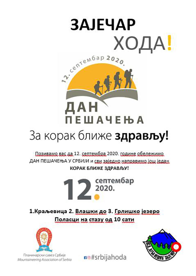 У суботу, 12. септембра, у 10:00 часова преподне, на неколико локација биће организовано пешачење у оквиру Дана пешачења који се тог датума обележава у Србији.