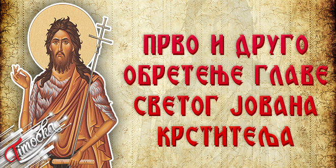 Православна црква и њени верници данас обележавају Прво и друго обретење главе Светог Јована Крститеља.