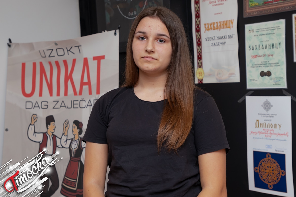 „Бавим се фолклором од основне школе. Када сам кренула у средњу школу, поново сам се уписала на фолклор. Сада сам код Драгане и Давида и веома сам задовољна њиховим радом. Играмо влашка кола која су из мог краја и позивам све који воле фолклор да нам се придруже и да заједно идемо на семинаре”, истиче Марија Новаковић, УЗОКТ „Уникат даг” Зајечар.