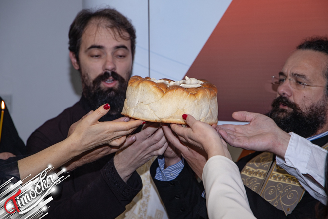 Сечење славског колача обавили су свештеници епархије Тимочке, протонамесник и старешина храма Зоран Голубовић и ђакон Урош Памучар.