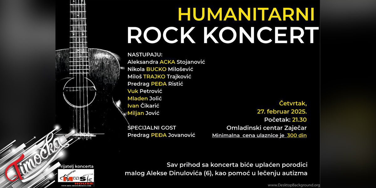 У Омладинском центру у Зајечару, биће организован хуманитарни рок концерт, у четвртак 27. фебруара 2025.