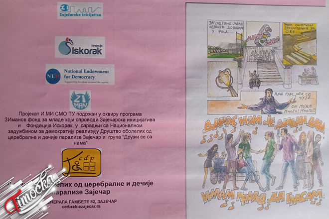 „Пројекат је имао фазу испитивања стања о учешћу младих и младих особа са инвалидитетом у раду политичких странака, а стрип се обраћа и младима који први пут стичу право на гласање. Покушали смо сликовито да објаснимо младима шта значи стећи право на гласање. Што се тиче самог Друштва за дечију и церебралну парализу, ми и даље настављамо са својим активностима. Учествовали смо у оснивању групе младих особа са инвалидитетом и њихових пријатеља. За време короне учествовали смо у подели хигијенских пакета, и помагали људима. Недавно смо прибавили и 24 болничких кревета, а то је донација ’Љуби ближњег свог’ из Шведске. Поделили смо гардеробу за наше чланове, а 30. јуна у Зајечару биће организован турнир у шаху, у коме ће учествовати људи из сличних удружења који долазе из девет градова. Имамо разне и радионице”, рекао је Иван Симић, секретар Друштва оболелих од церебралне и дечије парализе Зајечар.