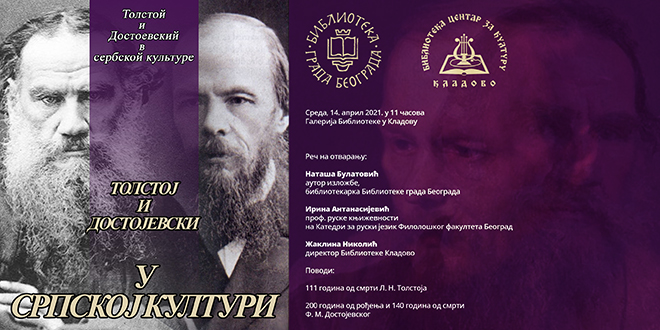 Библиотека „Центар за културу” Кладово у сарадњи са Библиотеком града Београда, приређује отварање документарне изложбе „Толстој и Достојевски у српској култури”.