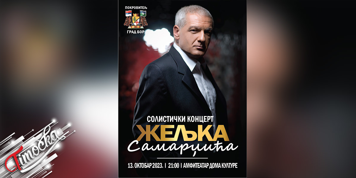 Након серије успешних концерата широм региона, један од најпопуларнијих певача данашњице и власник великих хитова Жељко Самарџић, одржаће концерт у петак 13. октобра 2023. са почетком у 21:00 сат, у амфитеатру Дома културе у Бору.