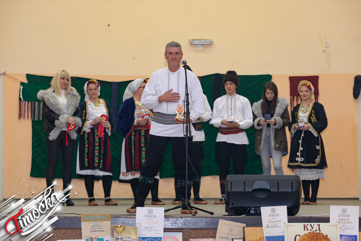 - Za 40 godina aktivnog igranja i 30 godina rukovođenja ansamblom Plaketa je dodeljena umetničkom rukovodiocu KUD-a „Sloga” iz Vražogrnca Nenadu Petkoviću.