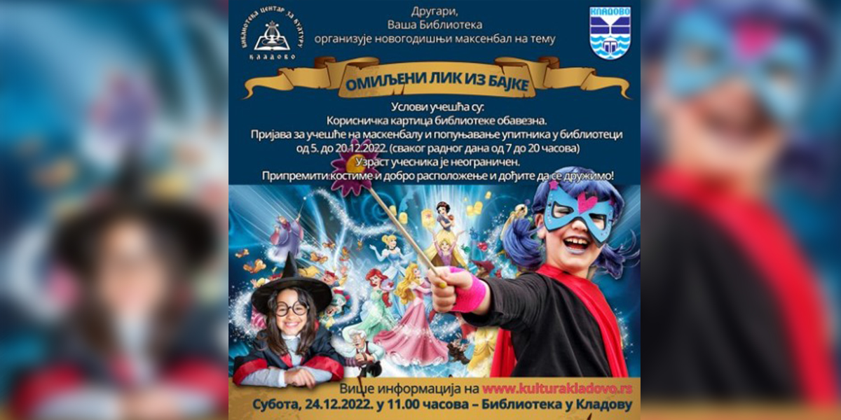 Novogodišnji maskenbal koji priređuje Biblioteka “Centar za kulturu” Kladovo, biće održan u subotu 24. decembra 2022.