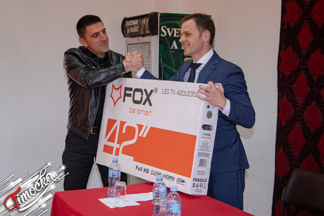 Министар финансија Синиша Мали уручио је и телевизор председнику Месне заједнице Велики Извор Нелију Николићу.