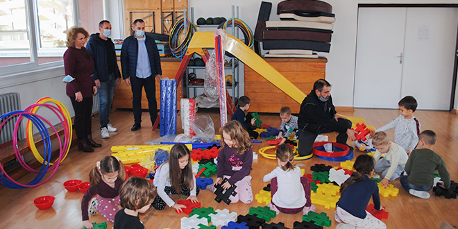 Далибор Машић, члан Општинског већа за спорт и омладину и Марко Вучинић, председник Спортског савеза Неготин, уручили су спортске реквизите и играчке, Предшколској установи „Пчелица”.