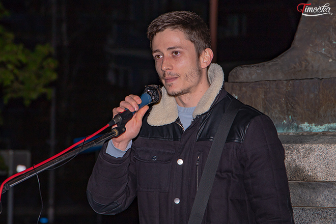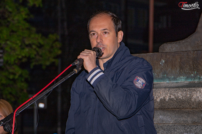 „Драго ми је што и овог пута, стојите овде да бисте остварили свој циљ, што у оволиком броју стојите сваки пут овде за боље идеале и за бољу будућност. Ми смо овде изнели неке захтеве и очекујем да ће то да буде решено. Постоје људи који су уцењени, са једне стране их разумем, а са друге стране и не баш. Нећу да будем роб и да слушам једног вођу који води мене и мој народ, и моју породицу, и моју државу у пропаст”, рекао је Немања Вељковић, организатор протеста.