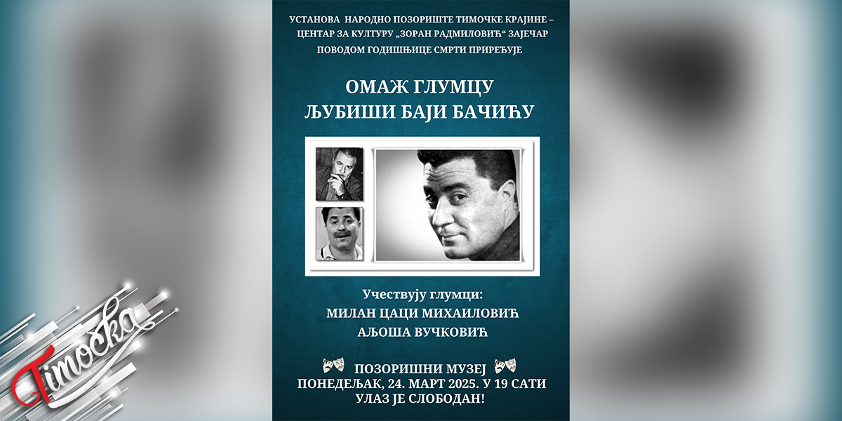 У Позоришном музеју у Зајечару биће приређен омаж глумцу Љубиши Баји Бачићу, у понедељак 24. марта 2025.