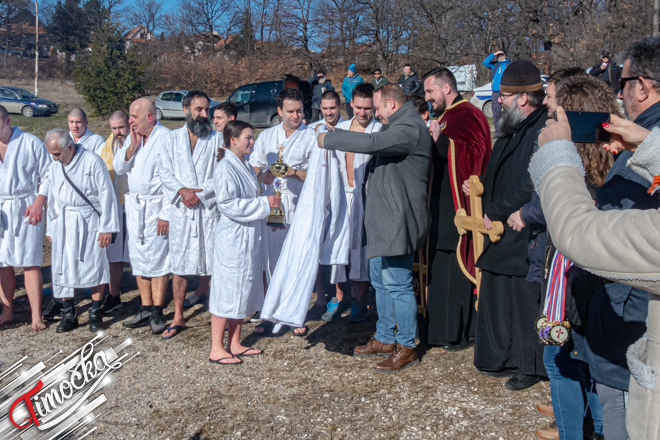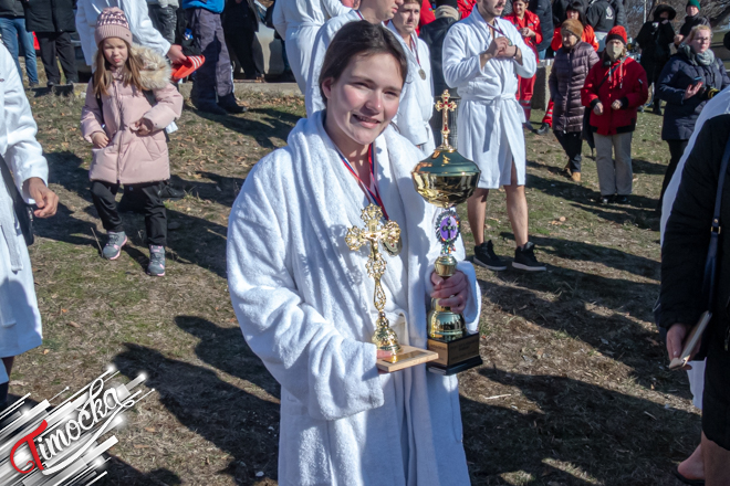 „Први пут учествујем. Просто је то била једна жеља од раније да учествујем у Богојављенском пливању, јер се бавим пливањем од седме године и ове године указала ми се прилика. Желела бих да се захвалим свим момцима који су ме пустили да прва допливам до Часног крста, баш су ме изненадили“, рекла је Нина Динић.