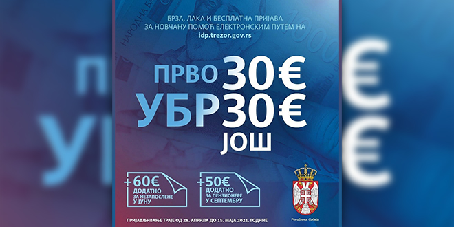 Prijava građana za novčanu pomoć u iznosu od 60 evra počela je u ponoć. Prvih 30 evra biće isplaćeno u maju, a drugih 30 evra u novembru. Prijavljivanje građana trajaće do 15. maja.