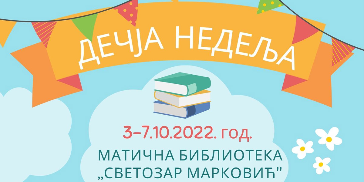 Matična biblioteka „Svetozar Marković“ Zaječar organizovaće niz događaja povodom Dečje nedelje, koja će biti obeležena od 3. do 7. oktobra 2022.