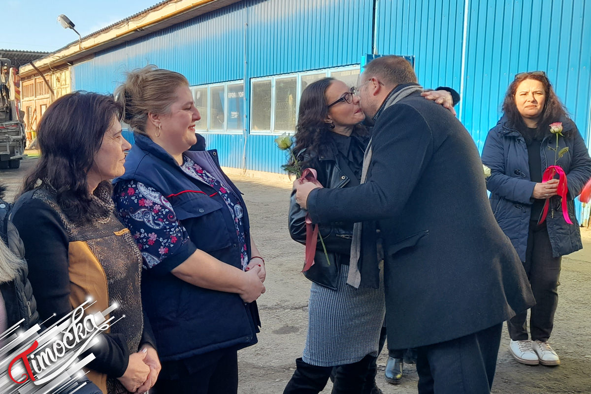 Gradonačelnik Bora Aleksandar Milikić sa svojim saradnicima posetio je zaposlene dame u JKP „3. oktobar” i darivao im cveće povodom Dana žena – 8. marta.