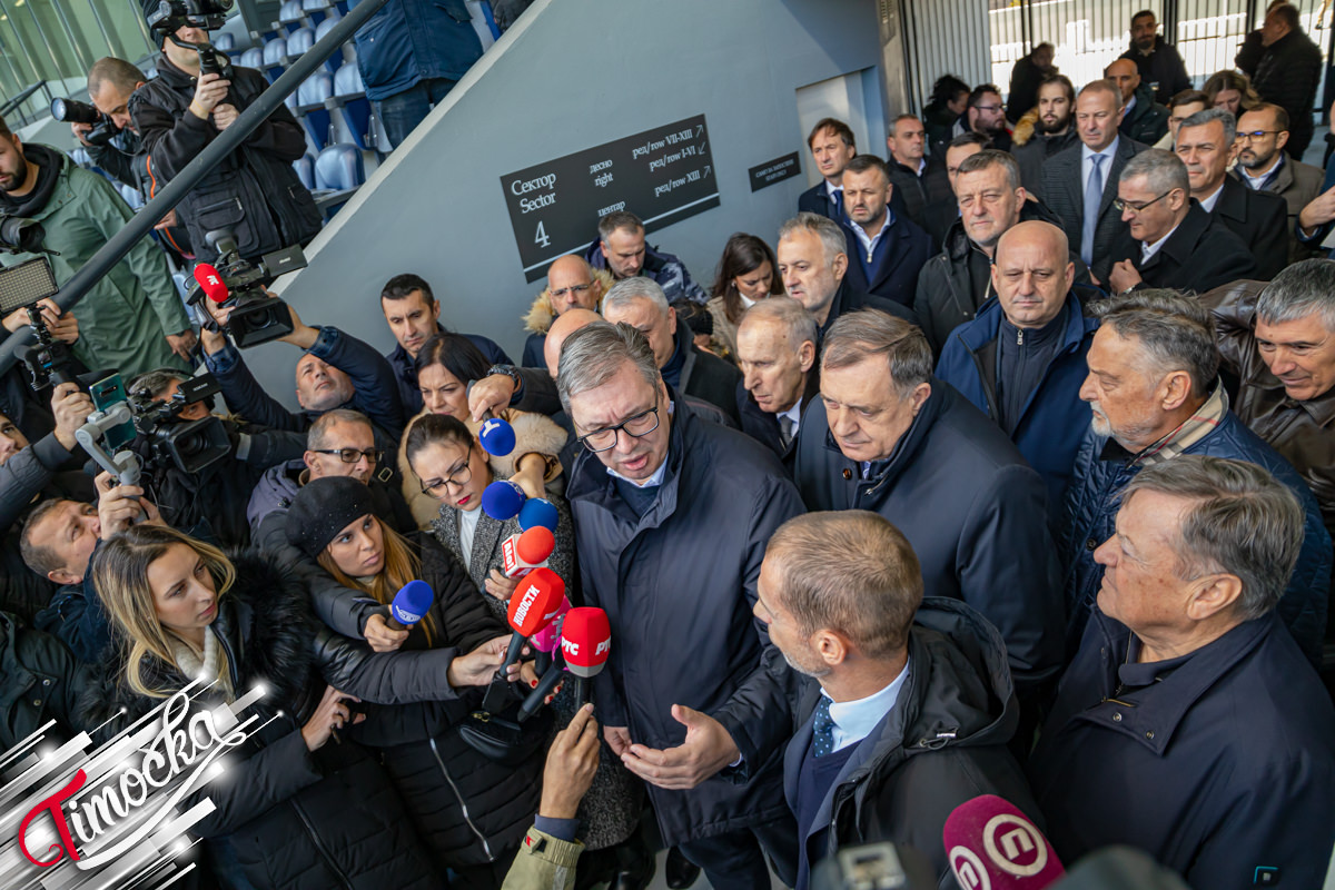 Након отварања стадиона у Зајечару, председник Вучић упутио се у Лесковац, где фудбалери Србије од 15:00 сати дочекују репрезентацију Бугарске у одлучујућем мечу за пласман на ЕУРО 2024.