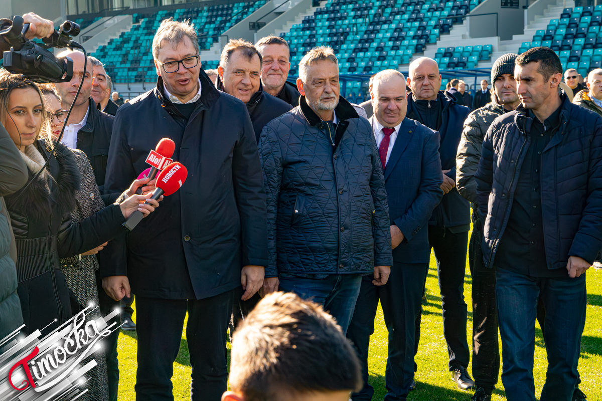 „Мислећи на будућност, морамо да мислимо првенствено на нашу децу и да вратимо спорт на велика врата у све градове. Да нам се омладина врати теренима, уместо телефонима. Ако мисле да у Београду треба да имамо 15 стадиона, а на истоку и другим деловима ниједан, то није политика коју ће држава да води. Свако друго место мора да има стадион какав има Београд. То да све имају само у Београду, за то нека нађу неког другог. Шта год да урадите то неће бити довољно добро. Видите, нисте у Лондону, ово је Зајечар. Када смо поставили камен темељац нико није веровао. Радимо и градимо што раније нисмо могли. Београд чудесно изгледа, али тако мора да изгледа сваки део Србије“ истакао је председник Републике Србије Александар Вучић.