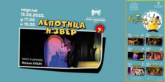 Predstava za decu Narodnog pozorišta Timočke Krajine „Zoran Radmilović” „Lepotica i zver”, po tekstu i u režiji Željka Hubača, biće odigrana u nedelju, 13. februara u Kruševcu.