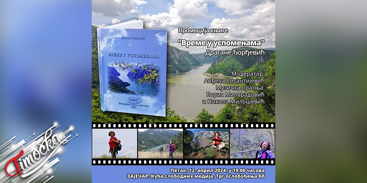 Promocija knjige „Vreme u uspomenama“, autorke Dragane Đorđević, biće održana u Kući slobodnih medija u Zaječaru, u petak 12. aprila 2024.