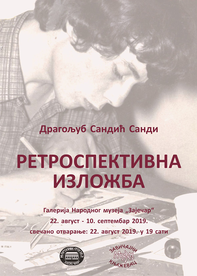 У галерији Народног музеја у Зајечару, у четвртак, 22. августа, биће отворена ретроспективна изложба и организована промоција монографије „Из пера мајстора” Драгољубa Сандићa Сандиja.