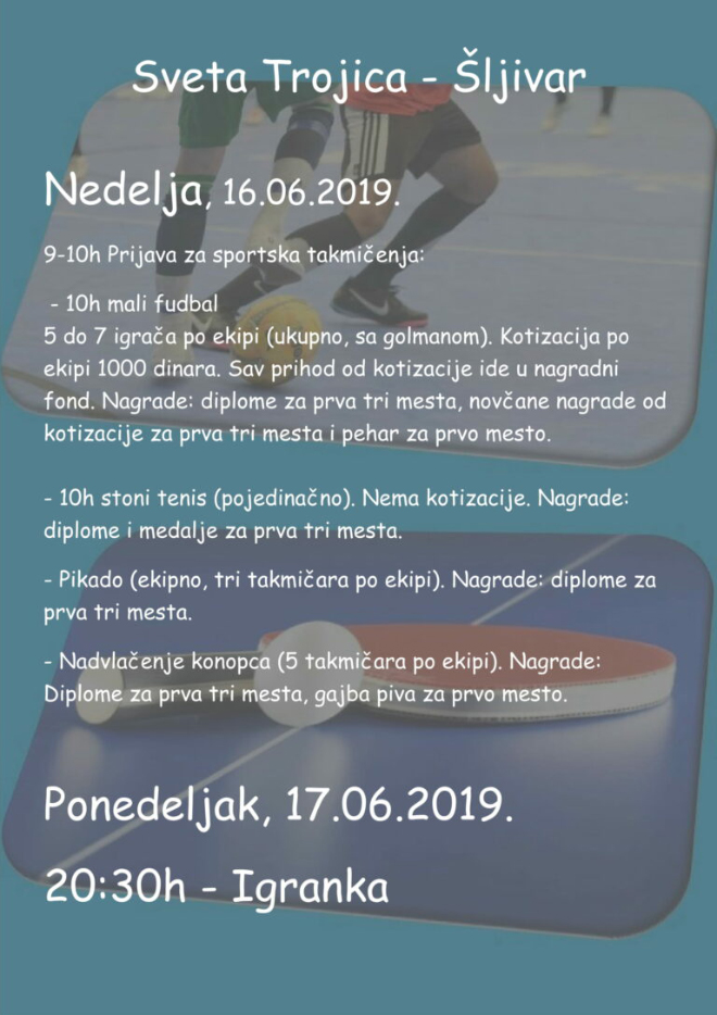 У селу Шљивар надомак Зајечара у недељу 16. јуна биће организована спортска такмичења поводом празника Свете Тројице.