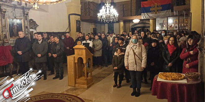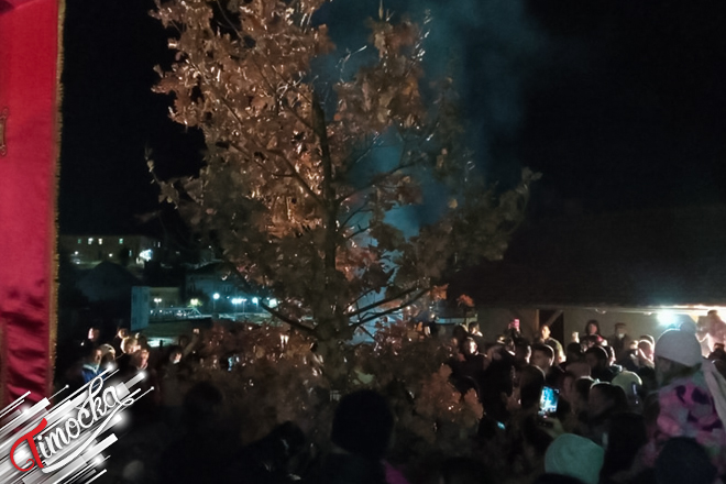 Након вечерње службе, грађани су присуствовали традицоналном ломљењу чеснице и налагању бадњака.