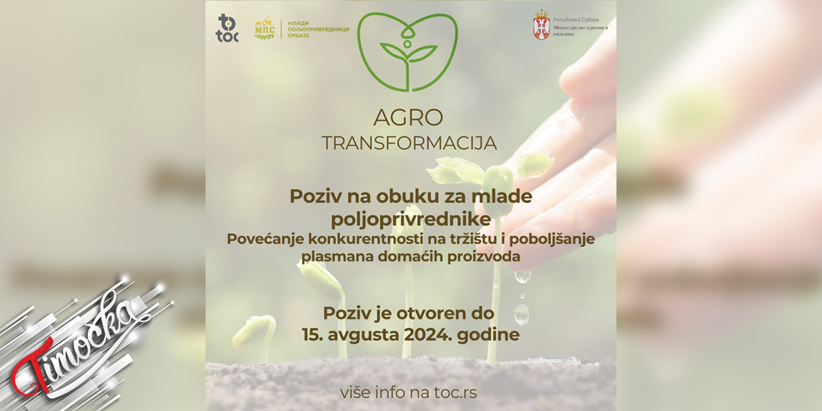 TOC u partnerstvu sa Mladim poljoprivrednicima Srbije, a u okviru projekta “Agro transformacija – Mladi poljoprivrednici na putu održive transformacije!” organizovaće dve dvodnevne obuke namenjene mladim poljoprivrednicima iz Zaječarskog, Borskog i Pomoravskog okruga.