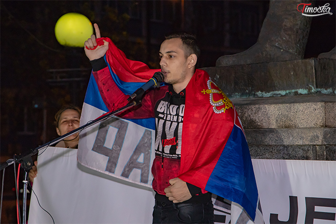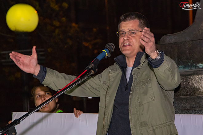 „Мени је велика част, што вам се вечарас обраћам и говорим испред споменика великог Зајечарца и Србина, великог Европљанина и великог председника Владе Србије Николе Пашића. Можете ли да замислите колико се Никола Пашић у гробу окреће када погледа ко је данас на његовом месту у Србији? Ми се окупљамо зато што желимо да живимо нормално, желимо да зарађујемо, да имамо нормалне болнице и школе! Не желимо да нам једини избор буде учлањење у СНС или одлазак у Аустрију. Желимо да будемо своји на своме. Свој живот, своје достојанство, сви имају то осим нас у Србији”, поручио је, између осталог, Вук Јеремић у Зајечару.