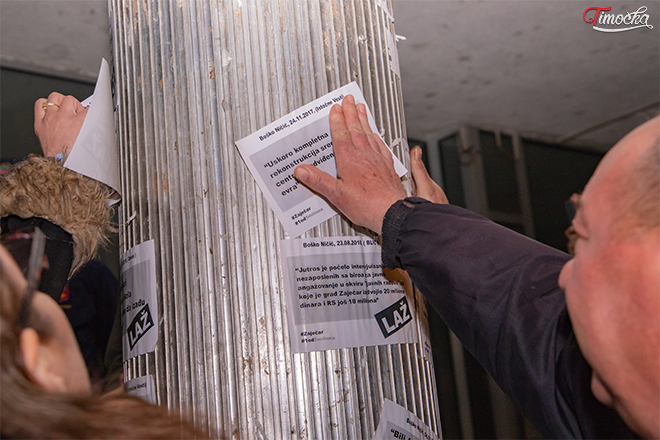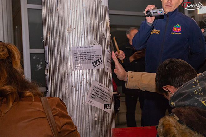 Током ове протестне шетње поново су лепљене налепнице са лажима зајечарских функционера на згради Градске управе и Kомитета.