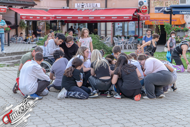 Потом је на Тргу ослобођења у Зајечару одржан „Арт караван” – „Inex cirkus teatra” из Београда и изведена кореодрама „Човек без детињства”, у којој су учествовали чланови и чланице „Дечијег центра” и Удружења „L. Down”.