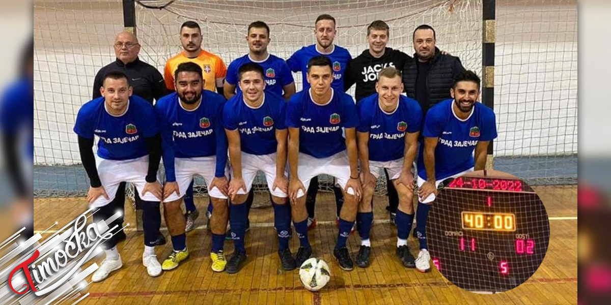 Футсалери зајечарског „Тимока 2013” декласирали су синоћ у Хали спортова на Краљевици КМФ „Тимакум” из Књажевца резултатом 11:2 у оквиру другог кола Регионалне футсал лиге – Група Север.