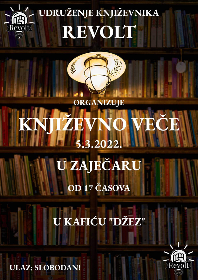 Удружење књижевника „Револт” организује прво књижевно вече у суботу, 5. марта, у „Jazz cafe”-у, у Зајечару.