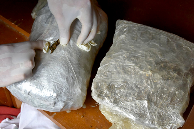 Полиција је приликом претреса стана, у коме осумњичени непријављено борави, пронашла око 2 килограма марихуане упаковане у четири пакета.