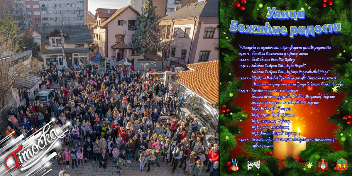 Поводом најрадоснијег хришћанског празника Божића, којим се прославља рођење Исуса Христа, у Зајечару ће бити организована „Улица Божићне радости”, у недељу, 7. јануара 2024.