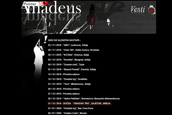 Организатори концерта информацију о наступу „Амадеус бенда” у Зајечару приликом дочека 2020. године нису могли да потврде, јер, како наводе, у току је поступак јавне набавке.