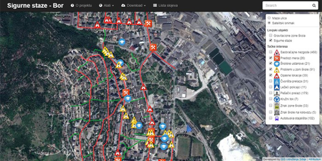 Сигурне стазе и путање кретања ученика осносвних и средњих школа у Бору можете скинуту на следећем линку sigurnestaze.com.