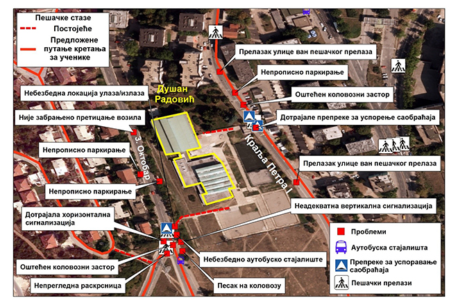 На порталу sigurnestaze.com дата је саобраћајна сигнализација и саобраћајне незгоде које су се десиле у последњих пет година. Укрштањем ових података са инфрастраструктуром и саобраћајном сигнализацијом града добијен је дигитални модел сигурних стаза и путања кретања ученика. Ово је само предлог мера, а од представника градске управе се очекује да прихвате ову студију која је детаљно урађена и да предузму одговарајуће кораке.