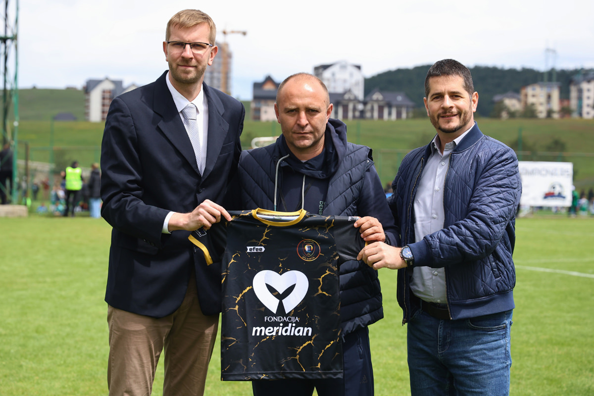 Као мотивацију за нове фудбалске победе, комплет спортске опреме Меридиан фондације доделио је Стефан Тодоровић, координатор за друштвено-одговорне активности.